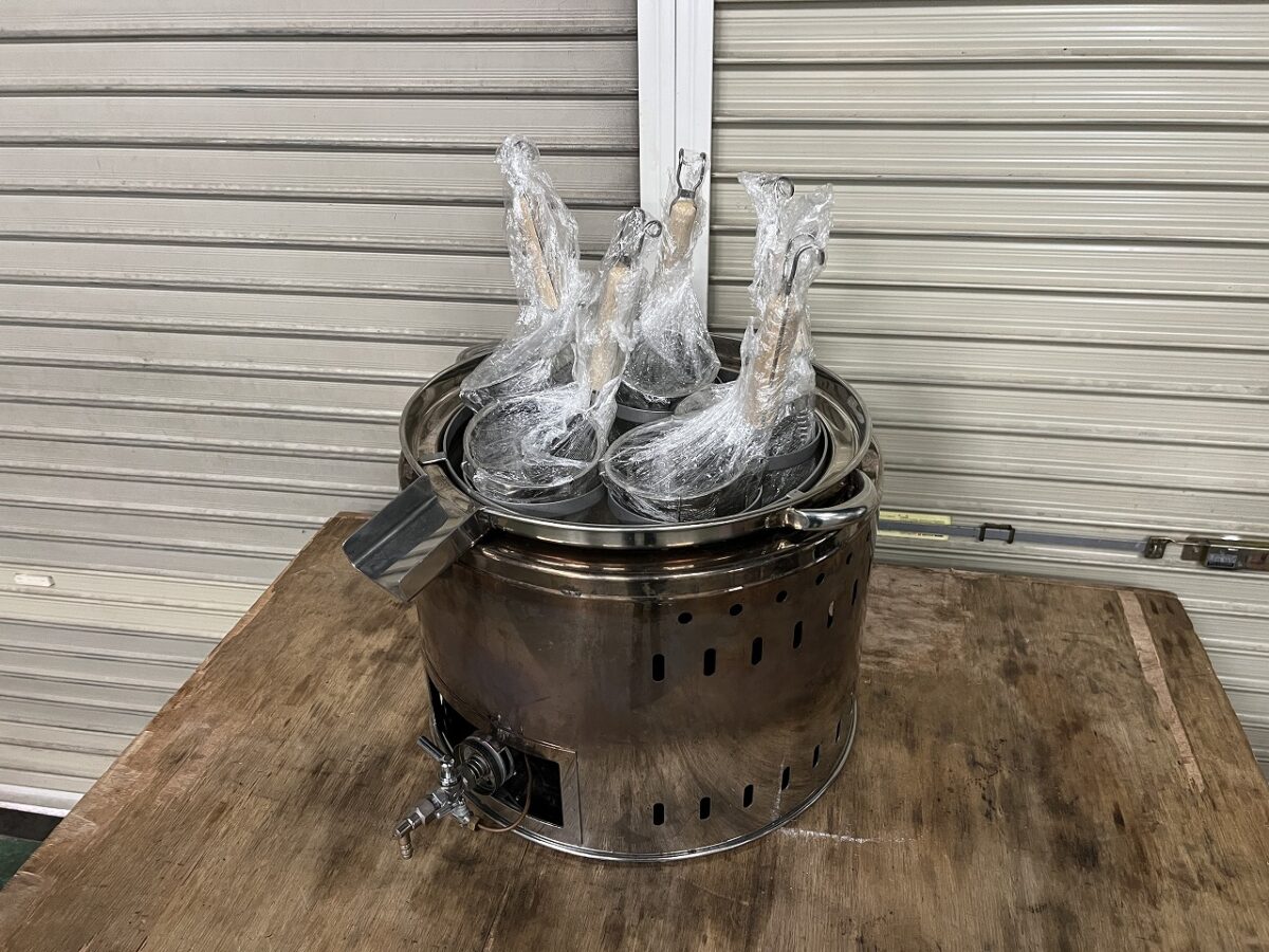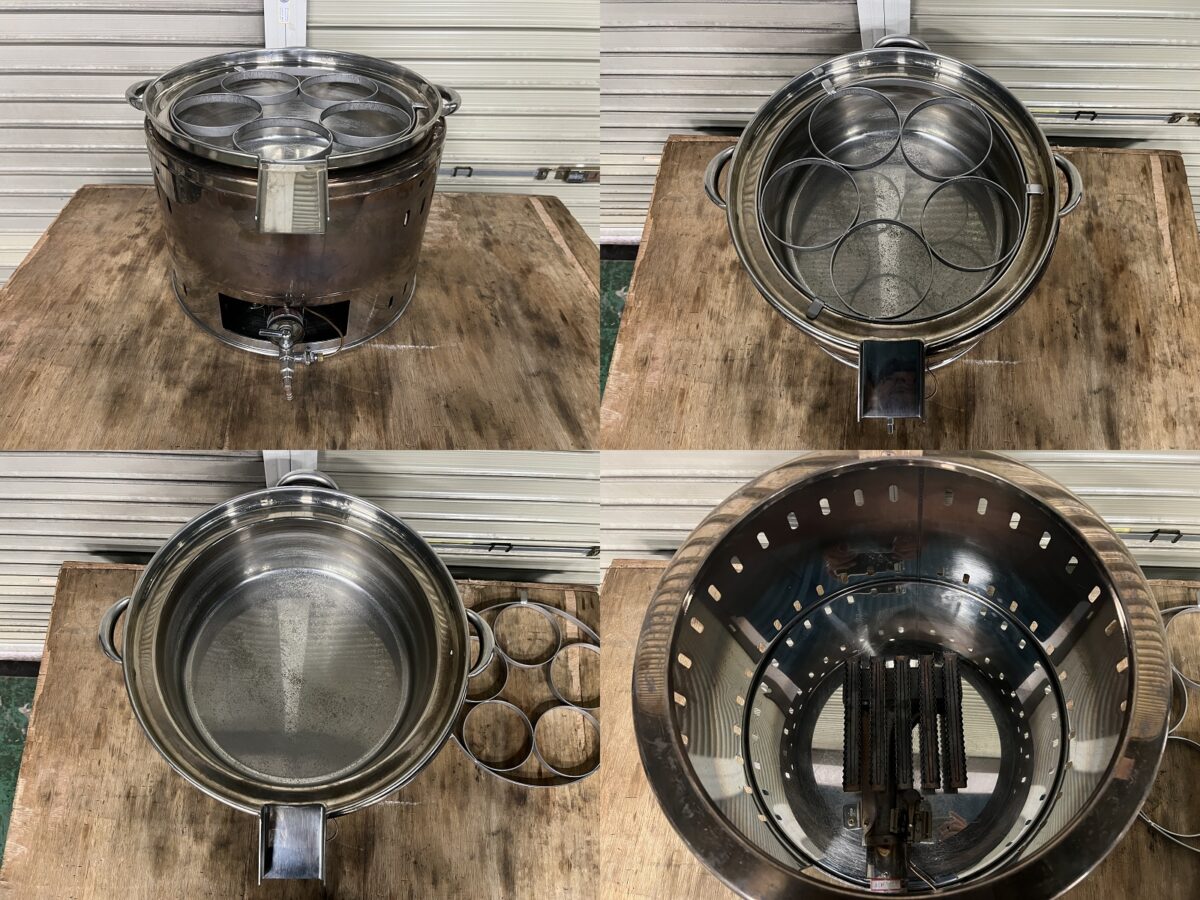 | その他 | ・ゆで麺鍋に、水アカの跡があります。 ・各ザルの形が、少し変形しています。 ・状態に神経質な方は、ご遠慮ください。 |